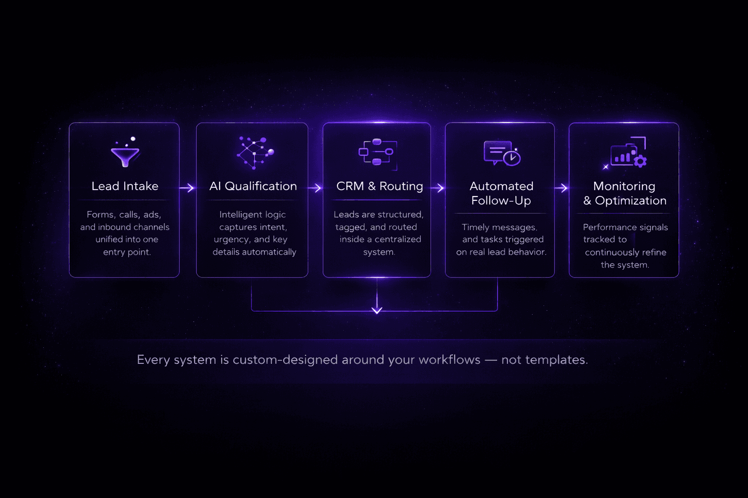We design and implement AI-powered systems that support your team — not replace it. Every workflow is built to reduce friction, improve response speed, and make human decision-making more effective at scale.